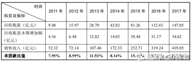 应收账款本期增加额与本期收入的比值(未回款比值)更能代表企业回款能力的强弱。本期未回款比值越大,表明企业在当年基本上没有收到多少现金,采用的是赊销方式做生意;未回款比值越小甚至为负值(应收账款本期增加额为负)代表企业的回款能力越强。此比值每年的趋势代表着企业每年回款能力的强弱变化。通过对企业各年度未回款比值的比较也可以知道企业在销售收款环节的能力大小。