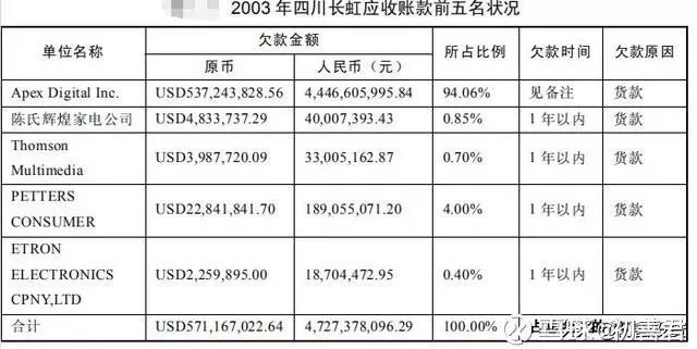 也就是说这一家企业让四川长虹从天堂到了地狱,从前企业业绩的大幅度增长靠这家企业,现在业绩巨亏也是这家企业造成的。回头看,APEX 公司完全成为了四川长虹的绝对大客户,一旦不还钱,四川长虹哭都来不及。