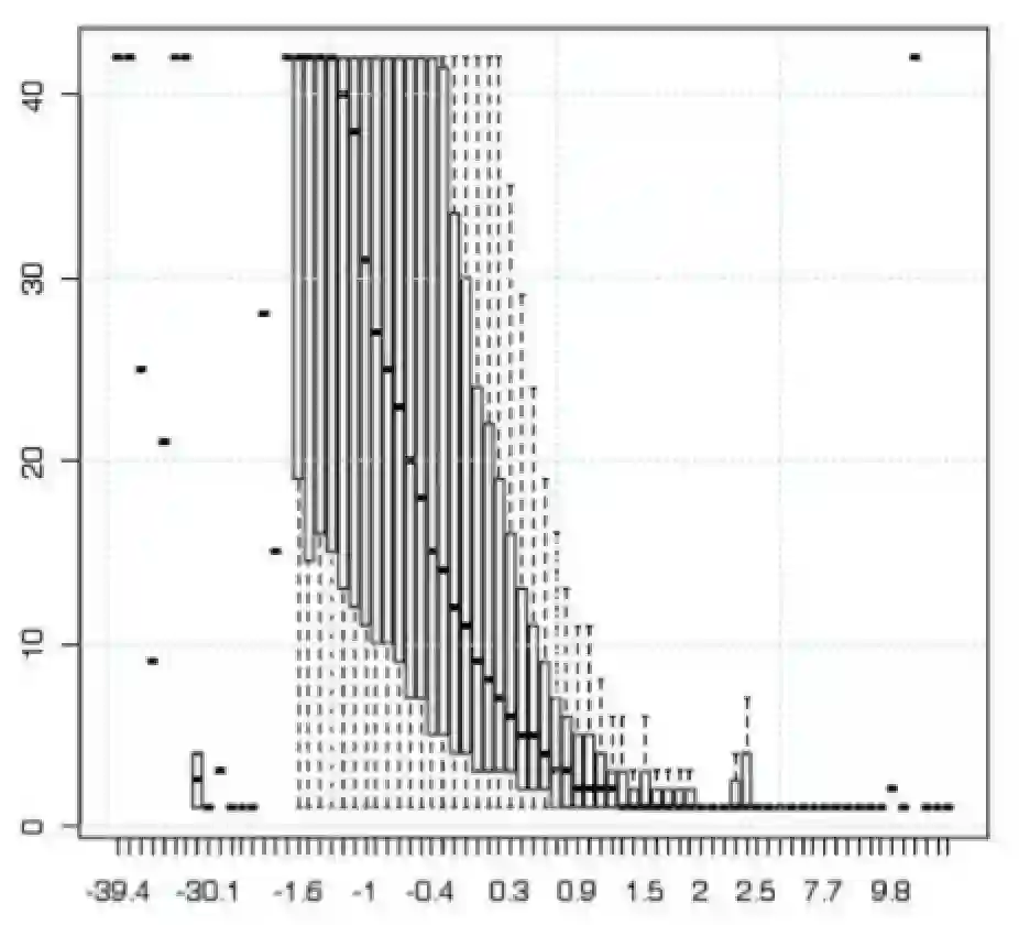 生存模型中,βTx反映了用户流失的风险,同时也和用户下次订单的时间间隔成正相关。下面的箱线图中,横轴为βTx,纵轴为用户下单时间的间隔。