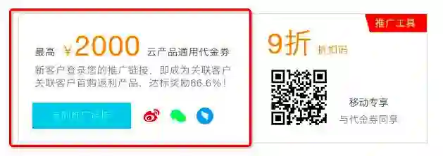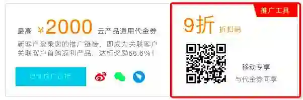 2.云主机9折码推广工具:新用户购买云主机时使用可以代金券叠加使用