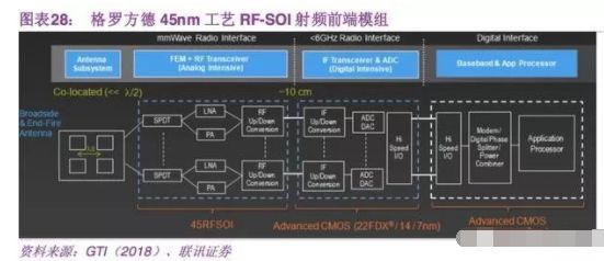 厂商希望采用SOI将射频开关和LNA集成到一起,可能会用300mmSOI晶圆实现。SOI技术具备集成毫米波PA、LNA、移相器、混频器的潜力。
