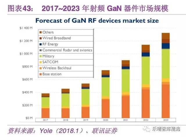 Yole数据显示2017年GaN射频器件市场规模约3.8亿美元。