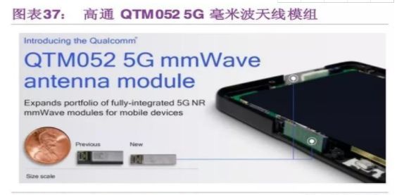 高通推出了QTM052毫米波天线模组产品,一部智能手机可集成4个该模组,预计2019年用于5G终端。