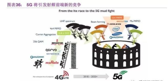 博通、Qorvo、Skyworks、村田、TDK不仅供应元器件还具有模组整合能力,将在集中度很高的市场中进一步确立优势。基带厂商也进入射频前端领域,行业竞争更加激烈。