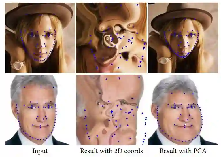 图 10:在 CariGeoGAN 中使用 PCA 表征和使用 2D 坐标的对比。输入图像来自 CelebA 数据集。