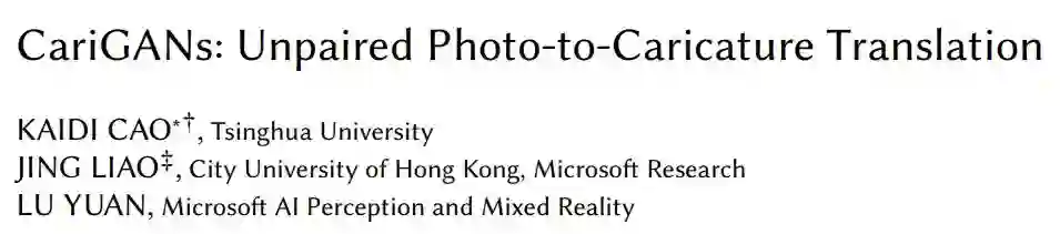 来自清华、香港城市大学和微软的研究者最近提出了 CariGAN,可以在没有成对图像的情况下将真人照片自动转换成形式夸张的漫画。目前这篇论文已经被 SIGGRAPH Asia 2018 大会收录。