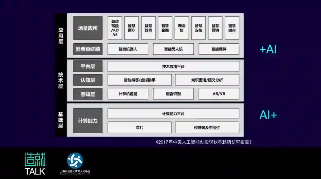 人工智能产业也是同样的道理,从底层的基础设施,到中间的平台服务,到上层的应用和创新,你在做哪一层,你的能力,你的资源,必须跟这一层的特点要进行匹配。
