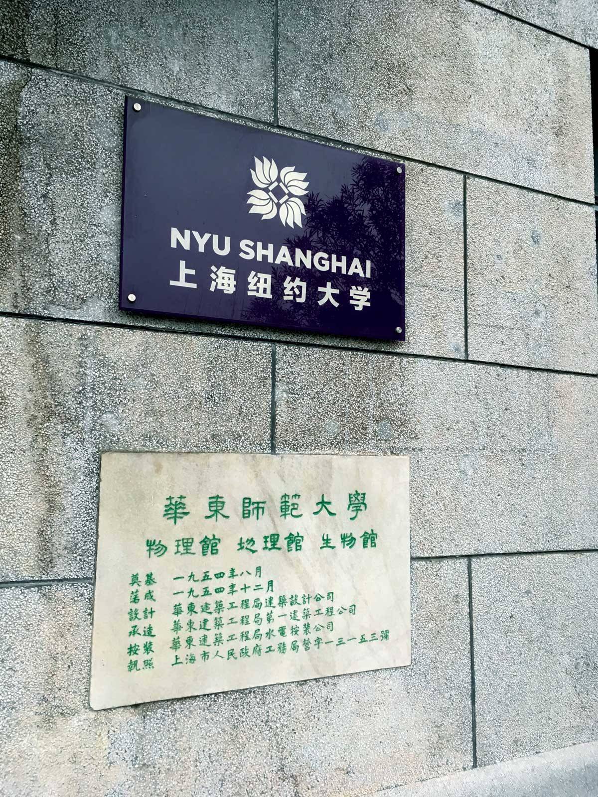 继阿布扎比成功开办之后,纽约大学开始将目光转向亚洲地区。2013年,在中国高等教育部门和上海市政府的支持下,纽约大学上海分校(以下简称上海纽约大学)创立。与阿布扎比分校相似,上海纽约大学是一所能自己授予学位的独立大学,同时也是第一所中美合作大学。上海纽约大学拥有一幢高15层楼的校园建筑,坐落于上海浦东,被称为该校的“学术中心”。除此之外,上海纽约大学有15个研究所,其中大部分与华东师范大学有合作关系。