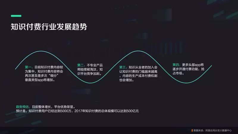 根据这份行业报告的预计,目前知识付费用户已达到5000万,2017年知识付费的总体市场规模将可达到500亿元。