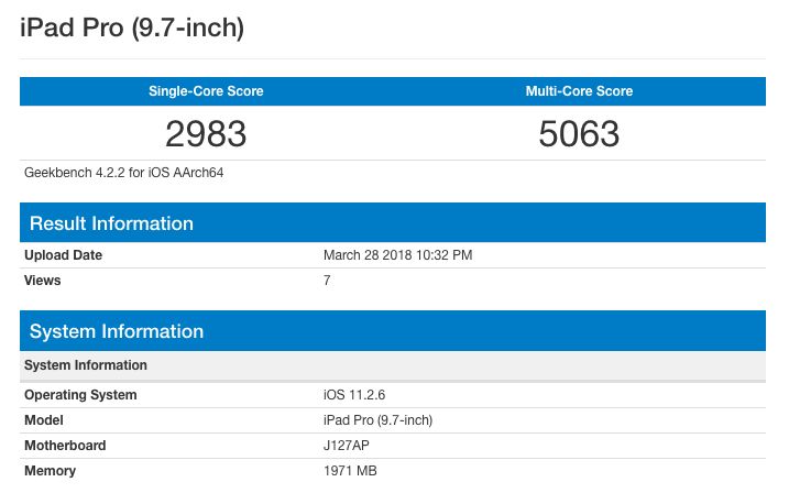 从这张对比表可以看出来,iPad 2018 在处理器上略有优势,从 GeekBench 上的跑分来看,A10 单核、多核跑分都比 A9X 要高出一截。