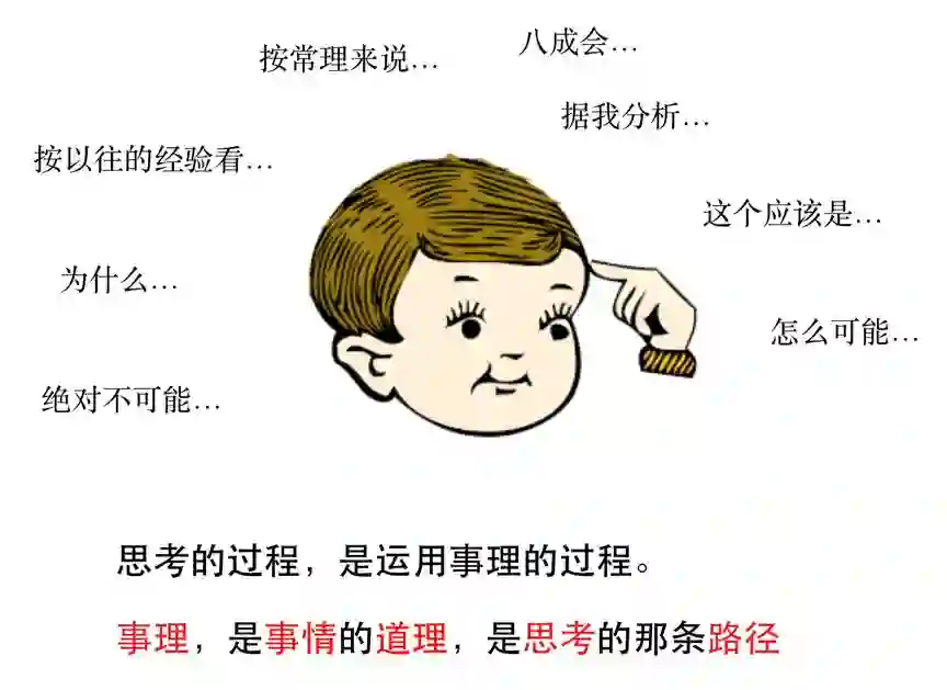 举例来说,如图4所示,我们在思考的过程当中,脑海里经常会比如“为什么”,“按以往的经验”、“八成会”、“据我分析”、“这个应该是”、“怎么可能”等词,这些词很形象的表现表示出了我们思考的过程,我们将思考的过程,定义为运用“事理”的过程,所谓“事理”,就是“事情”的道理,是思考的那条路径,这个“事情”就是我们所需要的事件。对于事理,我们可以有多种理解,事理是一套经验总结,是一套对知识的规则,是一套逻辑推理的方法论,是对特定环境下知识在时空域上的展开。图5展示了知识、事件、实体、事理之间的关系,事件高于实体,实体是事件的组成部分,事件是事理的重要组成部分,事理和实体共同组成了知识。