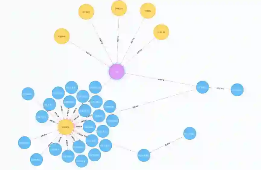 图12显示了事理图谱和知识图谱融合后的状态(部分),通过因果关系事件,将事件中的实体进行关联,结合实体之间的关联,可以进一步进行拓展,查询,从而实现整体图谱的联动。