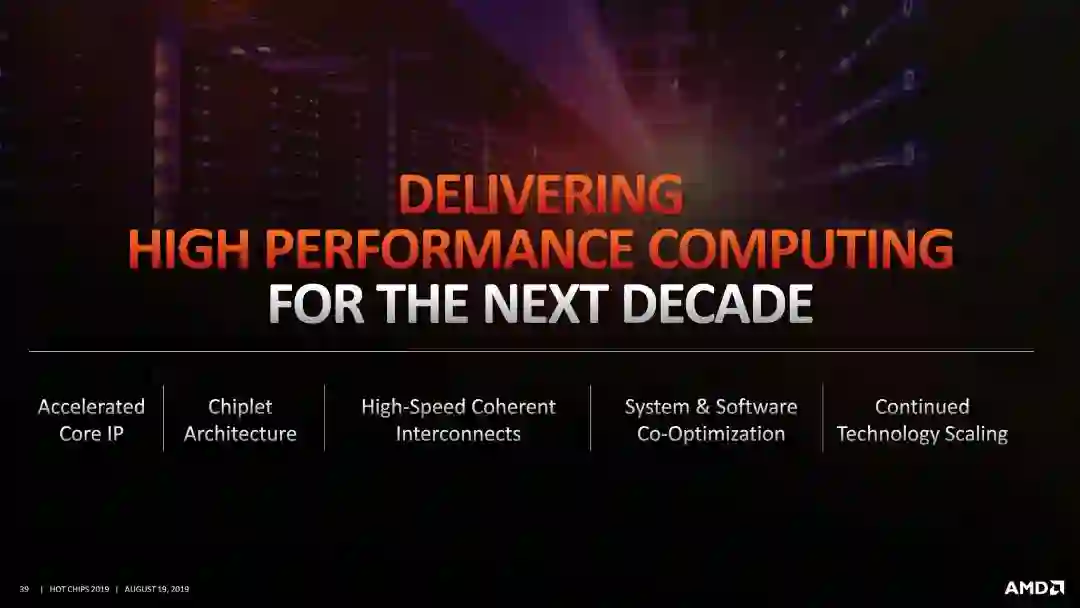 [1] Dr. Lisa Su, "Delivering the Future of High-Performance Computing with System, Software and Silicon Co-Optimization", Hot Chips 2019