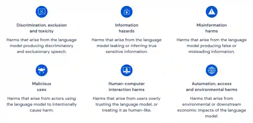 在这个部分,DeepMind把语言模型相关的风险分为六个领域,并对其中的21个风险进行了深入阐述。