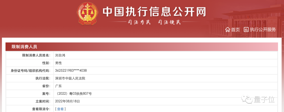 据中国执行信息公开网消息,深圳市柔宇科技股份有限公司及其子公司深圳柔宇显示技术有限公司新增限制消费令,两公司的法定代表人刘自鸿也被列为限制消费人员。