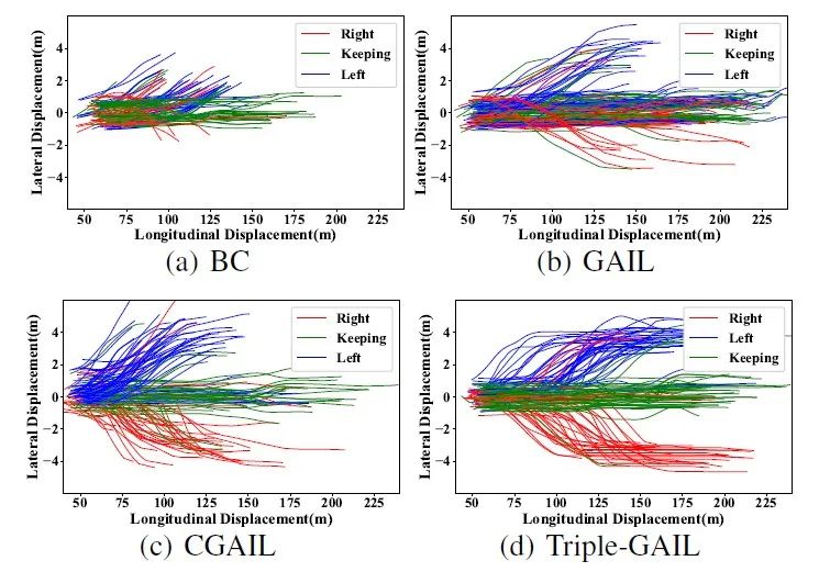 根据上述目标函数,我们从理论上证明了当且仅当 时,生成器和选择器能够同时收敛到各自的最优值,并在公开驾驶数据集(图4)和实时策略游戏中验证了Triple-GAIL相比其他方法能够更高效地学习到接近专家示教的多模态行为。文章链接:https://arxiv.org/abs/2005.10622。【诺亚决策推理RL研究团队与清华大学、南京大学联合研究工作】
