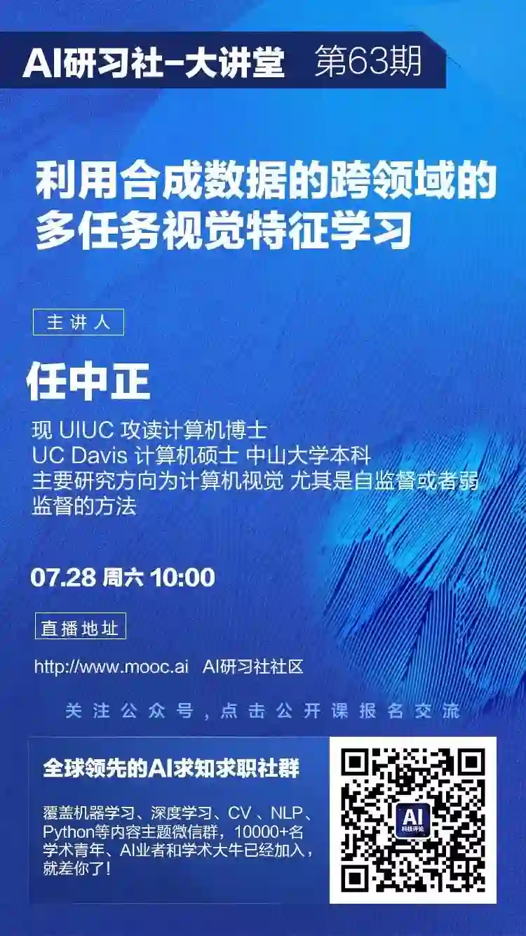 现在的神经网络可以通过监督学习学到很好的迁移学习本领,然而却需要百万级别的手工标注数据。自监督(self-supervised)任务就是一种为了取代标注数据的方式。 然而已有的自监督方法大部分是单任务,导致模型容易在这个任务上过拟合。我将分享一下我们用合成数据做多任务特征学习的工作,以及如何使用domain adaptation来让学到的特征更好的迁移到真实世界的视觉任务上。
