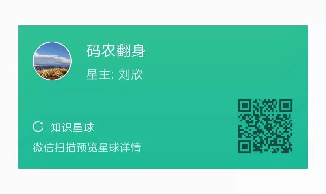 知识星球“码农翻身”是在别人怂恿下建起来的,“玩”了一年以后发现还真的不错, 相比QQ群,微信群,星球的最大好处就是消息不刷屏,可以把一些精华主题给沉淀下来。