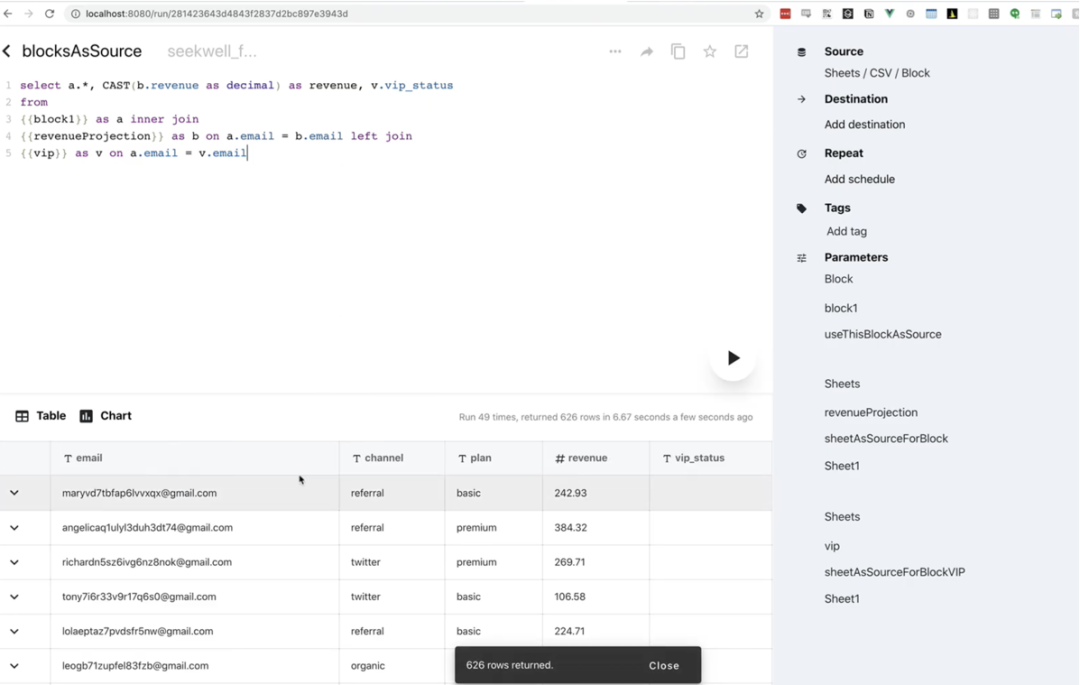 该工具支持 MySQL、Redshift、MS SQL Server、Postgres 和 Snowflake。SeekWell 处理 SQL 请求。