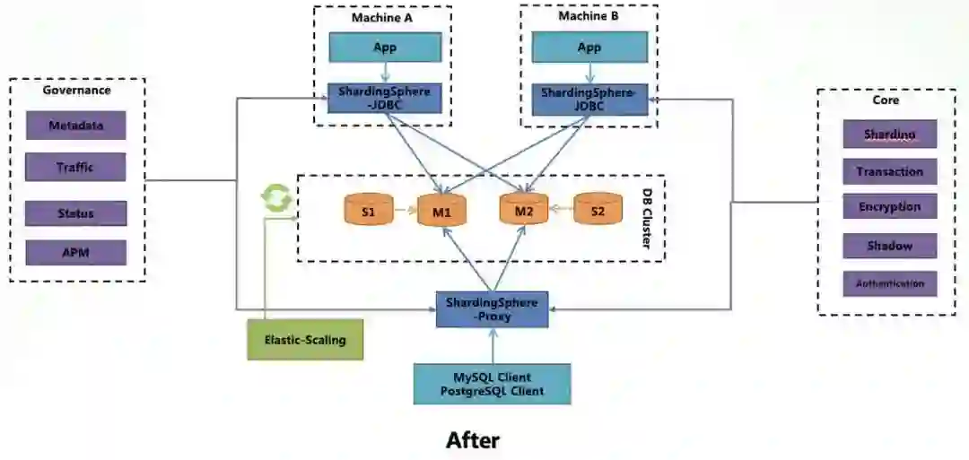 Apache ShardingSphere 的示例支持了我的论点,即简单而经典的分片架构可以做的不仅仅是分片。内核机制通过代理或驱动程序引导所有流量,然后如果它可以解析 SQL 并知道每个数据库的位置,那么以下工作将很容易执行: