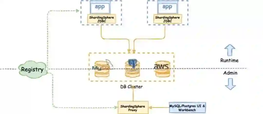 通过在不同 ShardingSphere 客户端之间共享核心功能,用户还可以选择混合部署,在查询性能和管理便利性之间取得平衡(如下图 2 所示)。