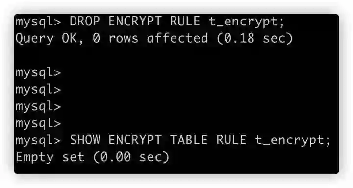 此示例向你展示如何使用 DistSQL 创建加密表。数据加密特性是 ShardingSphere Proxy,它负责帮助加密和解密数据。应用程序不需要任何编码重构,只需将明文发送到 Proxy,其将明文加密并将密文重新发送到数据库。此外,用户可以配置哪个表中的哪一列应该使用哪种加密算法进行加密。