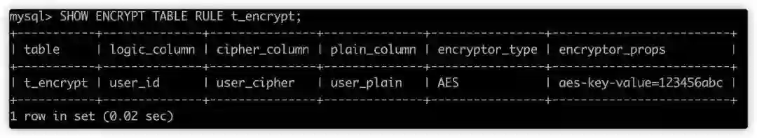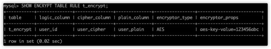 SHOW ENCRYPT TABLE RULE t_encrypt;