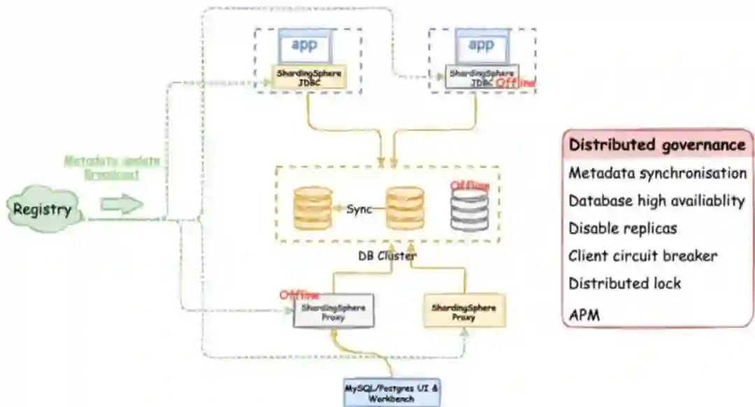 数据库(即存储节点)和 Proxy/JDBC(即计算节点)的分布式治理,