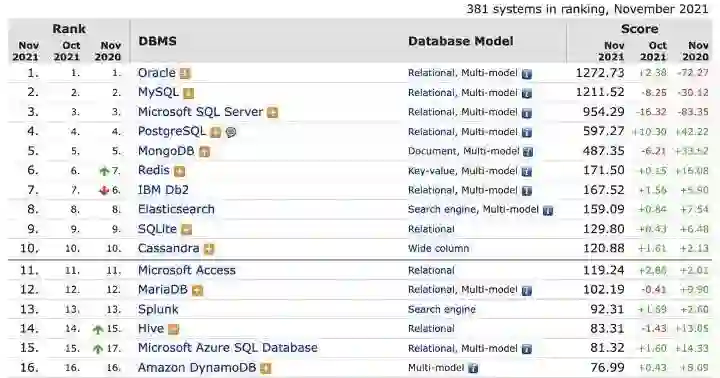 根据 DB-Engines 的数据库趋势排名,尽管市面上出现了许多新的数据库产品,但传统的关系型数据库仍然占据了相当大的市场份额。