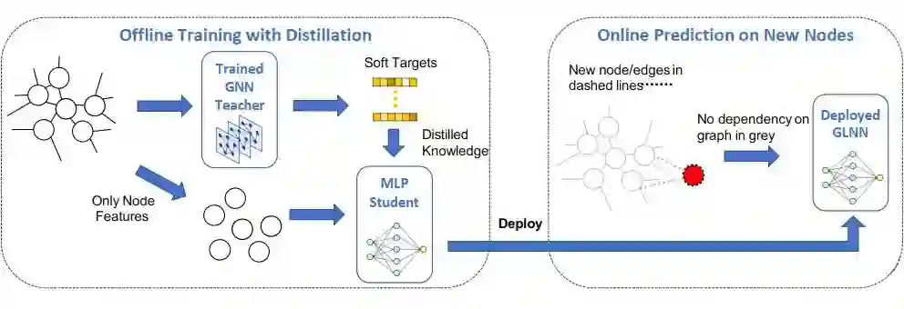 这篇文章提出了一个非常落地的科研问题,即如何解决 GNN 的推理时间过长无法在现实世界应用上使用。它选择使用了知识蒸馏(knowledge distillation)的方法来解决这个问题,即把 GNNs 的知识转换到 MLPs 上,使得 MLP 可以达到与 GNN 相匹敌的性能。笔者是非常喜欢这篇文章的,这篇文章的模型简单且有效,通过大量的实验从各个角度验证 GLNN 的有效性。