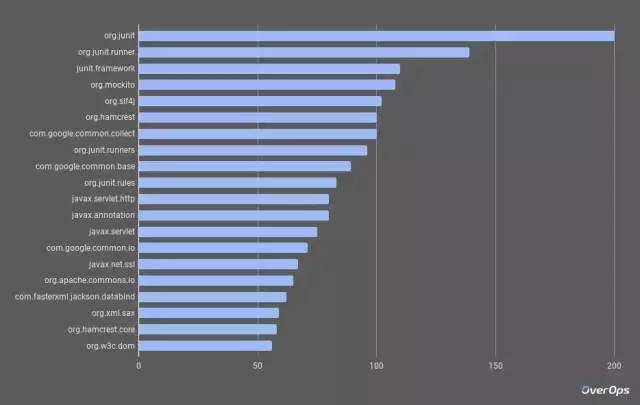 在前 20 个库中,我们可以发现 Google Guava 排名第 7,Guava 框架里面包含很多 JUnit 框架和 javax 库。我们还可以看到,最受欢迎的 JSON 库是 Jackson。