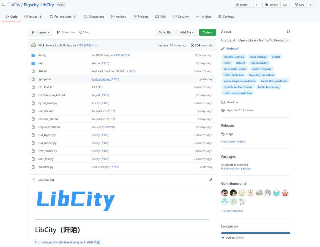 针对交通预测, 我们构建了统一、全面、可拓展的全流程算法库和数据集库——LibCity。目前,LibCity 已经在 Github 开源,开源代码仓库地址为: