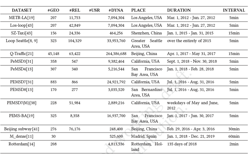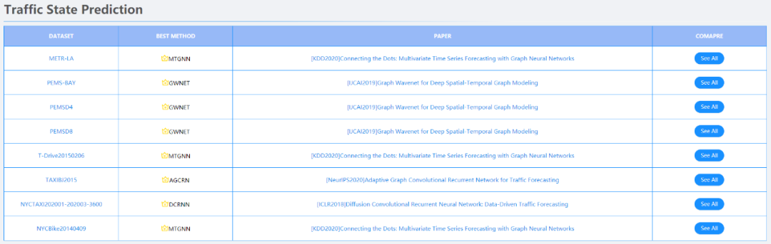 目前交通预测领域的研究成果已经非常丰富,我们总结了近 5 年 11 个顶级期刊会议(KDD, AAAI, ICLR, IEEE TKDE 等等)上交通预测领域的论文,得到一个 PaperList,包含 14 篇综述,351 篇论文,具体内容见地址: