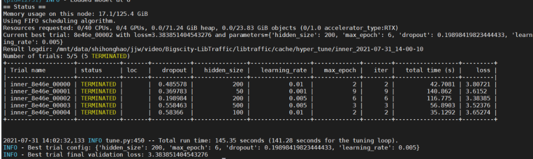 基于 Ray Tune 第三方库扩展实现。 用户仅需在命令行指定需搜索的参数名及其搜索算法与范围。