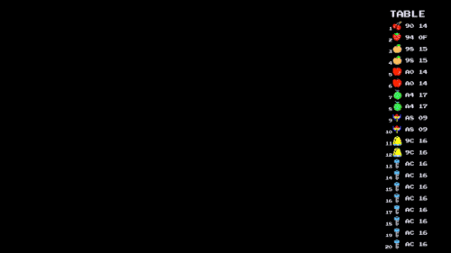原来,水果表格被储存在内存的$3B08这个地方,往后的数据是背景音乐什么的。