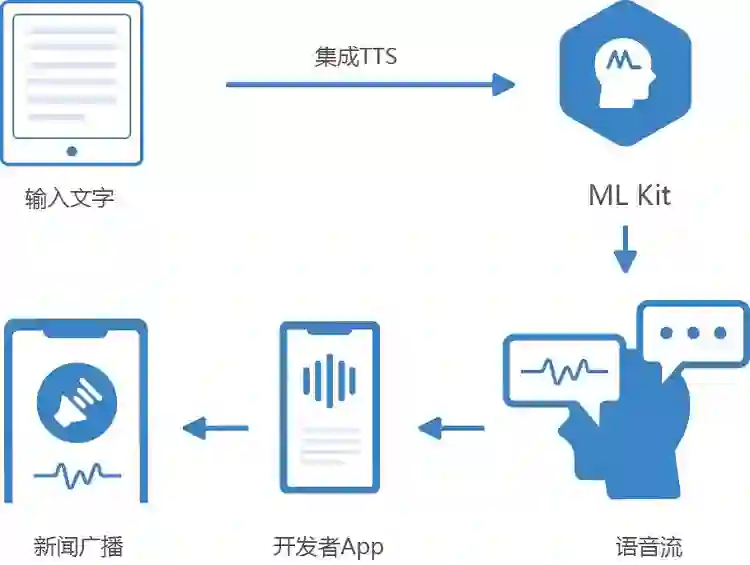 对于更加抽象的语音数据的识别,由于增加了时间维度,使用机器学习识别也更加复杂。其中 TTS(Text To Speech 文本到语音)是 AI 声音识别中重要的应用场景,也是 AI 识别发展的重要方向。现在,HMS Core ML Kit 的 TTS 音色定制已经实现个性化的 TTS,模拟定制多种真人音色。TTS 语音要达到高度拟人、自然流畅(而不是早期 AI 语音的机器化和顿挫感),背后是华为技术团队采用深度神经网络技术对 TTS 模型训练、精细地调优,付出大量研发精力才得以实现。TTS 音色定制的应用场景非常广泛,在新闻小说的阅读、智能硬件、地图导航、服务类应用中,开发者都可以集成 TTS 能力,为用户提供实时、可替换、多音调的语音播放,极大提升和创新应用的交互体验。