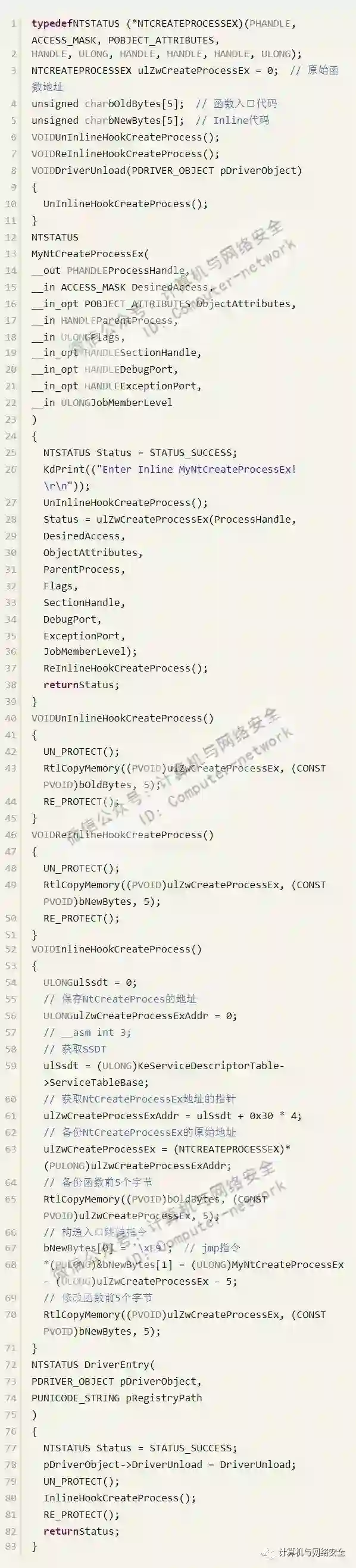 实现Inline Hook SSDT的代码如下: