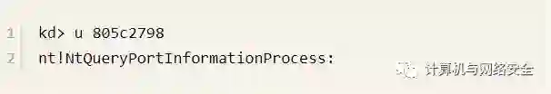 再用u命令来查看805c2798处的反汇编代码,输入命令u 805c2798,输出如下: