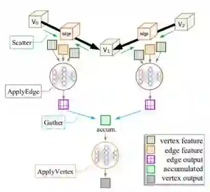 本文介绍了基于图的深度神经网络(GNN)的第一个并行处理框架 NGra。NGra 提出了一种新的 SAGA-NN 模型,用于将深度神经网络表示为顶点程序,其每一层都具有定义好的(结果分发、应用边、信息收集、应用顶点)图操作阶段。该模型不仅可以直观地表示 GNN,而且便于映射到高效的数据流表示。NGra 通过自动图形划分和基于块的流处理(使用 GPU 核心或多个 GPU),显式地解决了可扩展性的挑战,它仔细考虑了数据位置、并行处理和数据迁移的重叠等问题。NGra 虽然是稀疏的,但通过对 GPU 上的结果分发/信息收集 operator 进行高度优化,进一步提高了效率。本文的评估结果表明,NGra 可以扩展到任何现有框架都无法直接处理的大型真实图结构上,同时即使是在小规模的 TensorFlow 的多基线设计上,也可以实现高达 4 倍的加速。