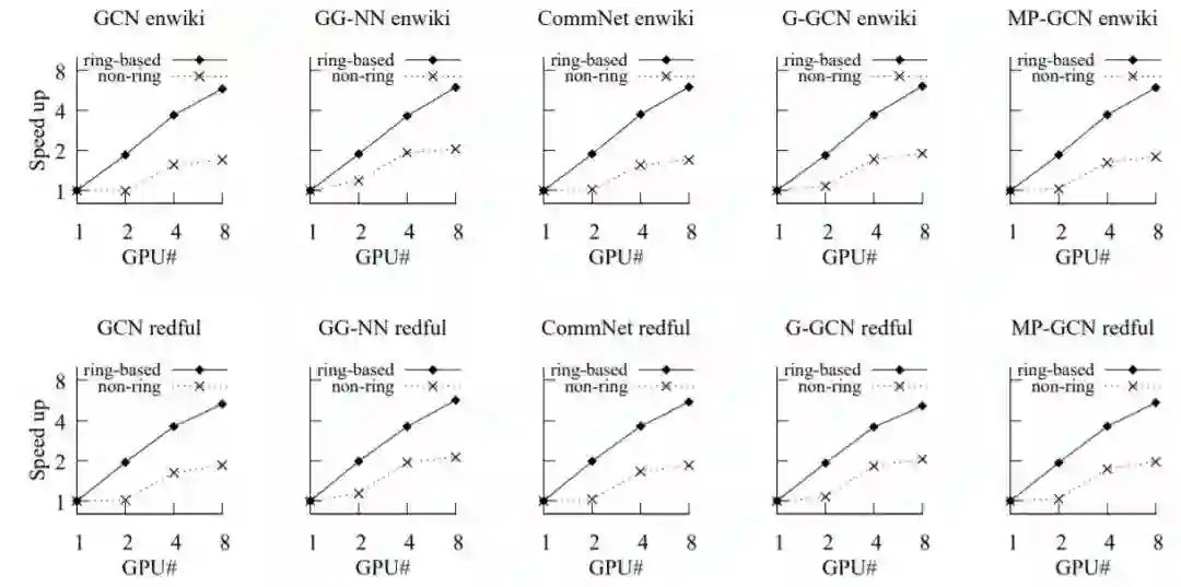 作者使用顶点程序抽象和用于图传播过程的自定义 operater 对 TensorFlow 进行扩展,从而实现 NGra。结果证明 NGra 可以被扩展,然后通过利用单个服务器的主机内存和 GPU 的计算能力,实现在(包含数百万顶点和数百特征维度以及数亿边的)大型图上对 GNN 算法的支持,而这不能直接通过使用现有的深度学习框架实现。与可以通过 GPU 支持的小型图上的 TensorFlow 相比,NGra 可以取得大约 4 倍的运算加速。作者还对 NGra 中的多个优化所带来的性能提升进行了广泛的评估,以证明它们的有效性。