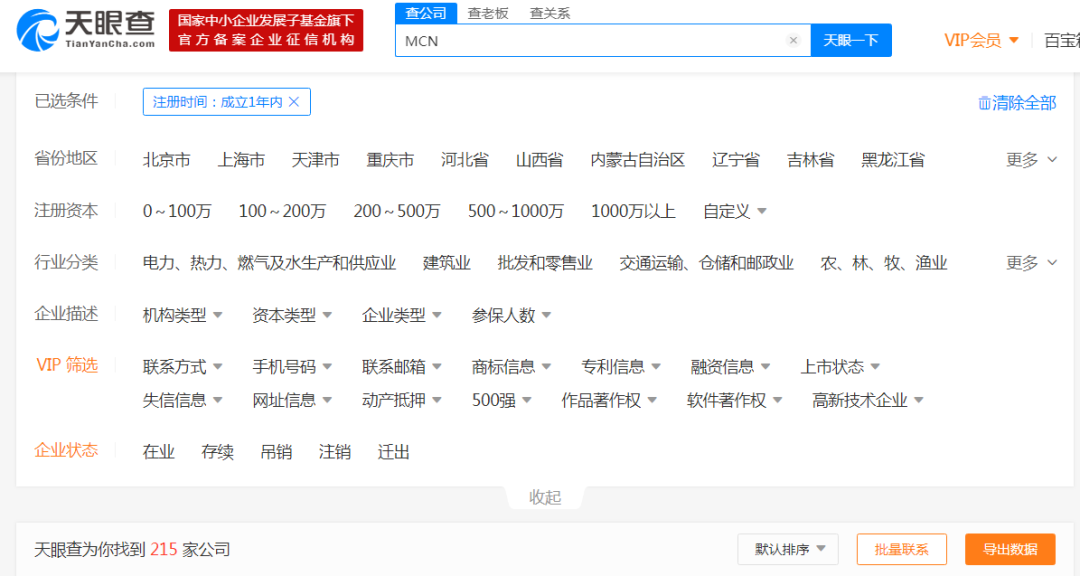 而最近一年成立的MCN公司,在天眼查APP页面显示上更是高达215家。一面是数量庞大的MCN公司;一面是带货需求即刻的品牌商,这或许也意味着B2B创业机会。