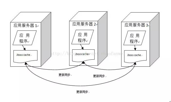 Jboss Cache 的分布式缓存在集群中的所有服务器中保存相同的缓存数据,当某台服务器有缓存更新的时候,会通知集群中其他机器跟新缓存数据。优点是应用程序可以 从本地快速的获取缓存数据,但当集群规模较大的时候,缓存更新信息需要通过到集群所有机器,其代价可想而知。