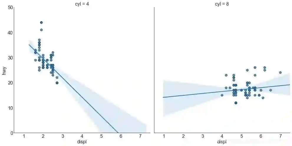 或者,您可以在其自己的列中显示每个组的最佳拟合线。你可以通过在里面设置参数来实现这一点。