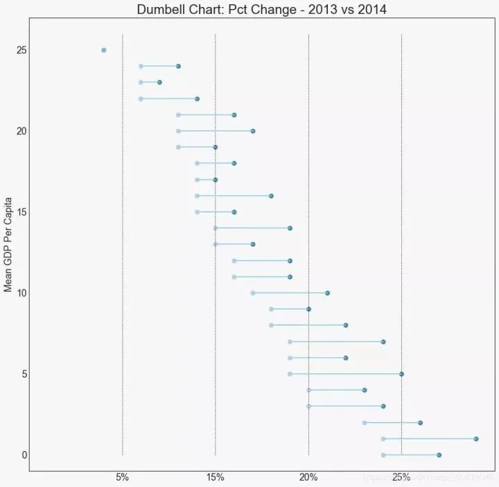 哑铃图传达各种项目的“前”和“后”位置以及项目的排序。如果您想要将特定项目/计划对不同对象的影响可视化,那么它非常有用。