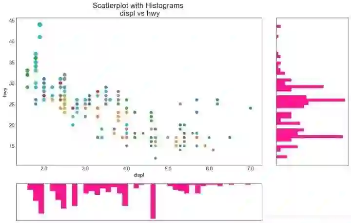 边缘直方图具有沿X和Y轴变量的直方图。这用于可视化X和Y之间的关系以及单独的X和Y的单变量分布。该图如果经常用于探索性数据分析(EDA)。
