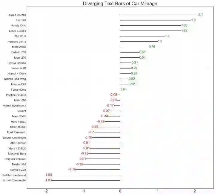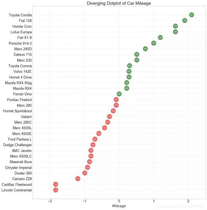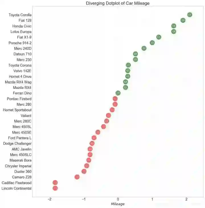 Scatteplot是用于研究两个变量之间关系的经典和基本图。如果数据中有多个组,则可能需要以不同颜色可视化每个组。在Matplotlib,你可以方便地使用。
