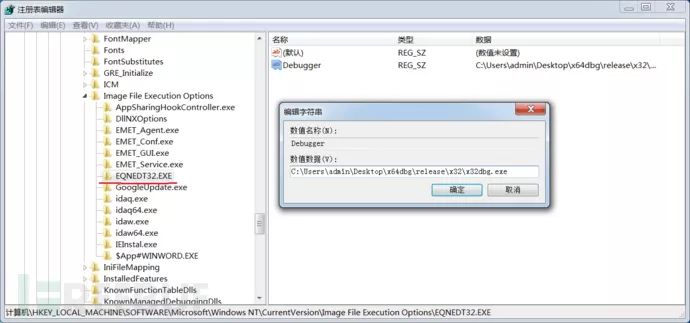 在调试之前先将系统的 ASLR 给关闭,并且更改注册表用来将调试器附加到公式编辑器上,为的是方便调试。