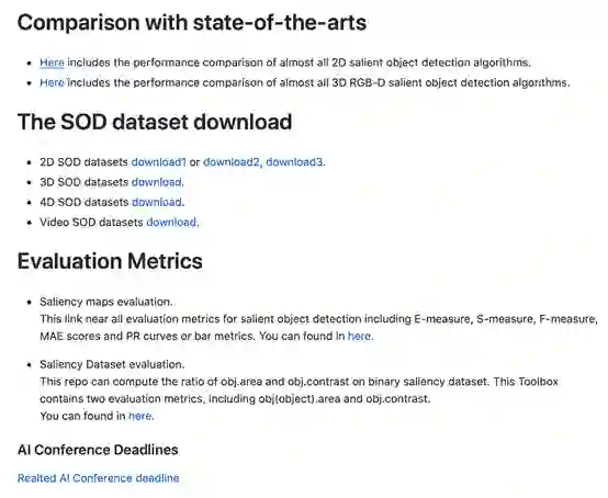 今天给大家推荐一个优秀的Github项目,总结了近几年的显著性目标检测相关顶会顶刊论文以及相应代码。尤其适合初学者的论文阅读,以及高级研究员的文献检索和代码查找。