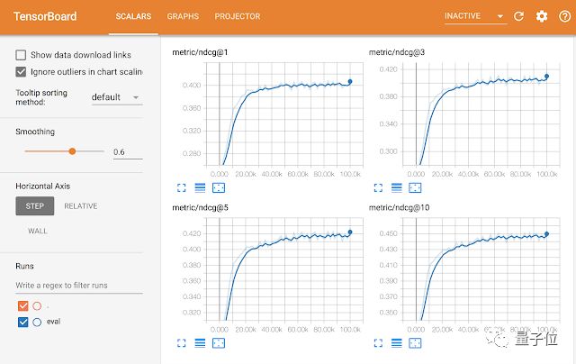 TF-Ranking支持许多常用的排名衡量标准,包括平均倒数排名(MRR)和NDCG,还可以在TensorBoard(开源TensorFlow可视化仪表板)上显示这些标准。