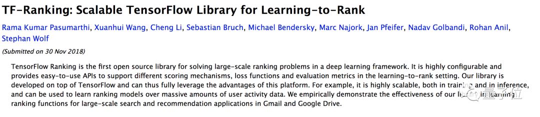 除了上述特征外,研究人员最后再次强调, TF-Ranking也是一个无偏见的排序学习库。